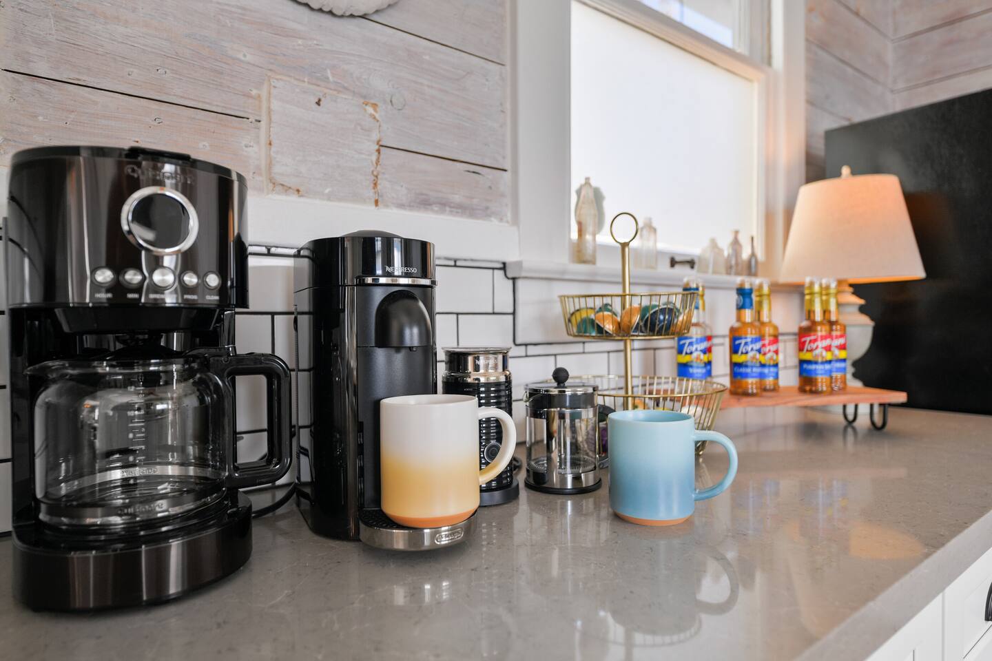 Full coffee bar! We provide a Nespresso as well as traditional drip coffee pot and pour over coffee pot. Pods for Nespresso, flavored syrups and sugar are provided. ROKU for TVs - WiFi (cable not provided, you may sign in to your streaming services).