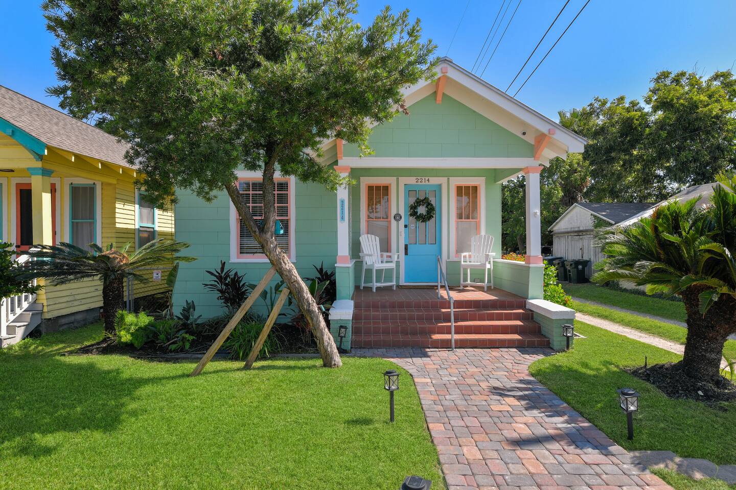 Relax with your family at this peaceful, historic, beach house built in 1914. Short walk to Beach, Pleasure Pier, The Spot & Blvd. Seafood restaurants! Large deck w/ FIRE PIT & Adirondack chairs, latching gates, HOT TUB, Oversized Umbrella, Outdoor Shower, BBQ pit. BEACH GEAR provided (chairs, wagon, cooler w/ wheels, beach toys, umbrellas, beach towels). FULL COFFEE BAR! Nespresso machine, drip coffee pot, pour over pot, frother, coffee pods, sugar, syrups. FULL KITCHEN w/ upscale amenities!